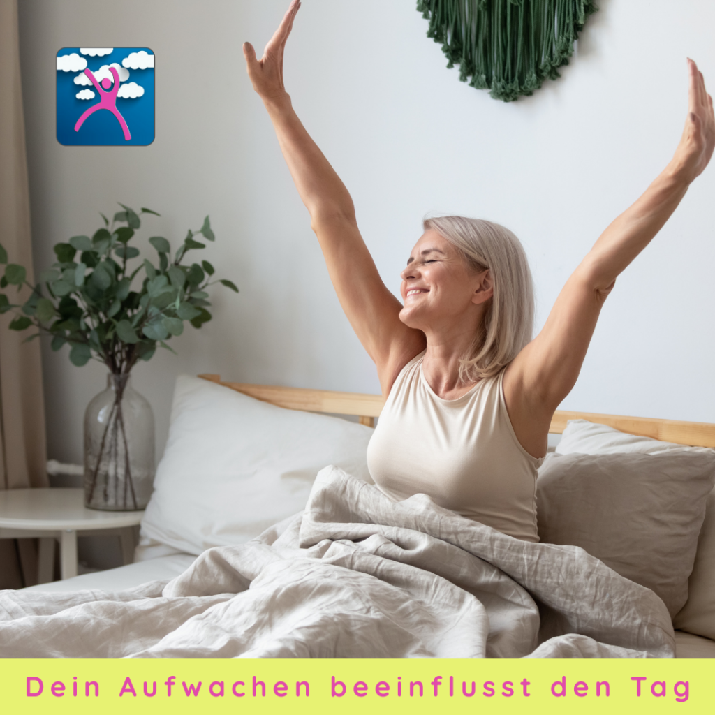 Finde einen Satz, mit dem du gut aufwachst und in den Tag kommst! Den denkst du oder sagst du und vor allem fühlst du noch im Bett gleich nach dem Augen aufschlagen.